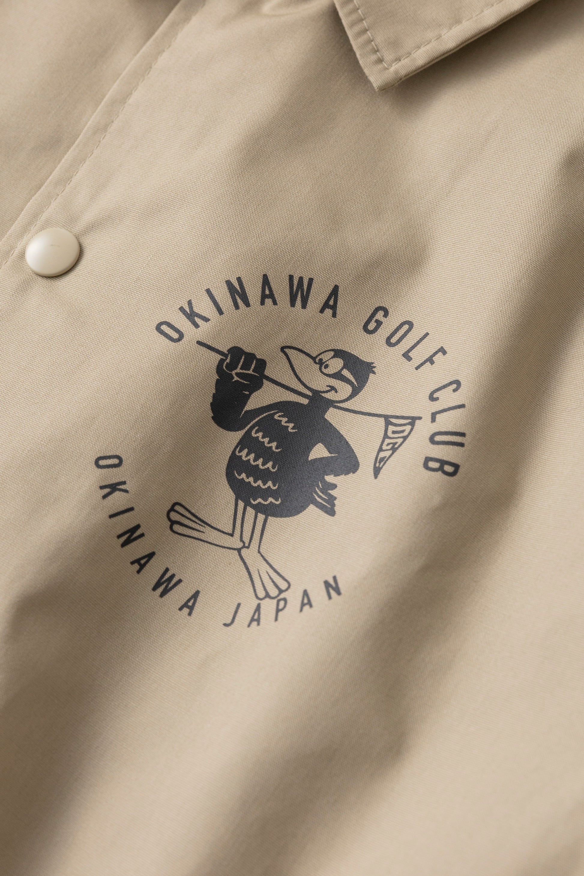 左胸には沖縄ゴルフクラブのキャラクターの、「ヤンバルクイナのHiga-kun」をプリントし、バックプリントは大きなLogptypeでデザイン。