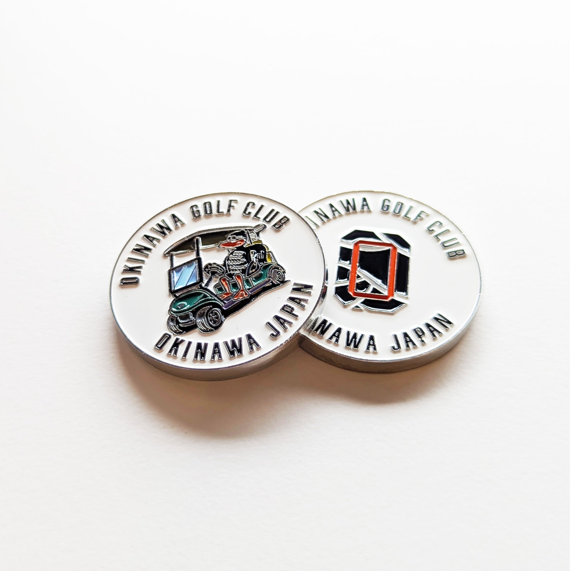 OKINAWA GOLF CLUBのキャラクターの、沖縄固有の飛べない鳥「ヤンバルクイナの比嘉くん」が、カートに乗ってのんびりと移動する姿をゴルフマーカーにしました。