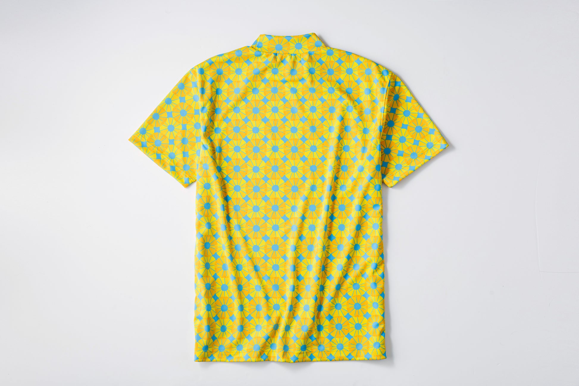 パインのイエローと沖縄の空を感じさせるブルーのビタミンカラーが元気をくれるデザインのモックネック。