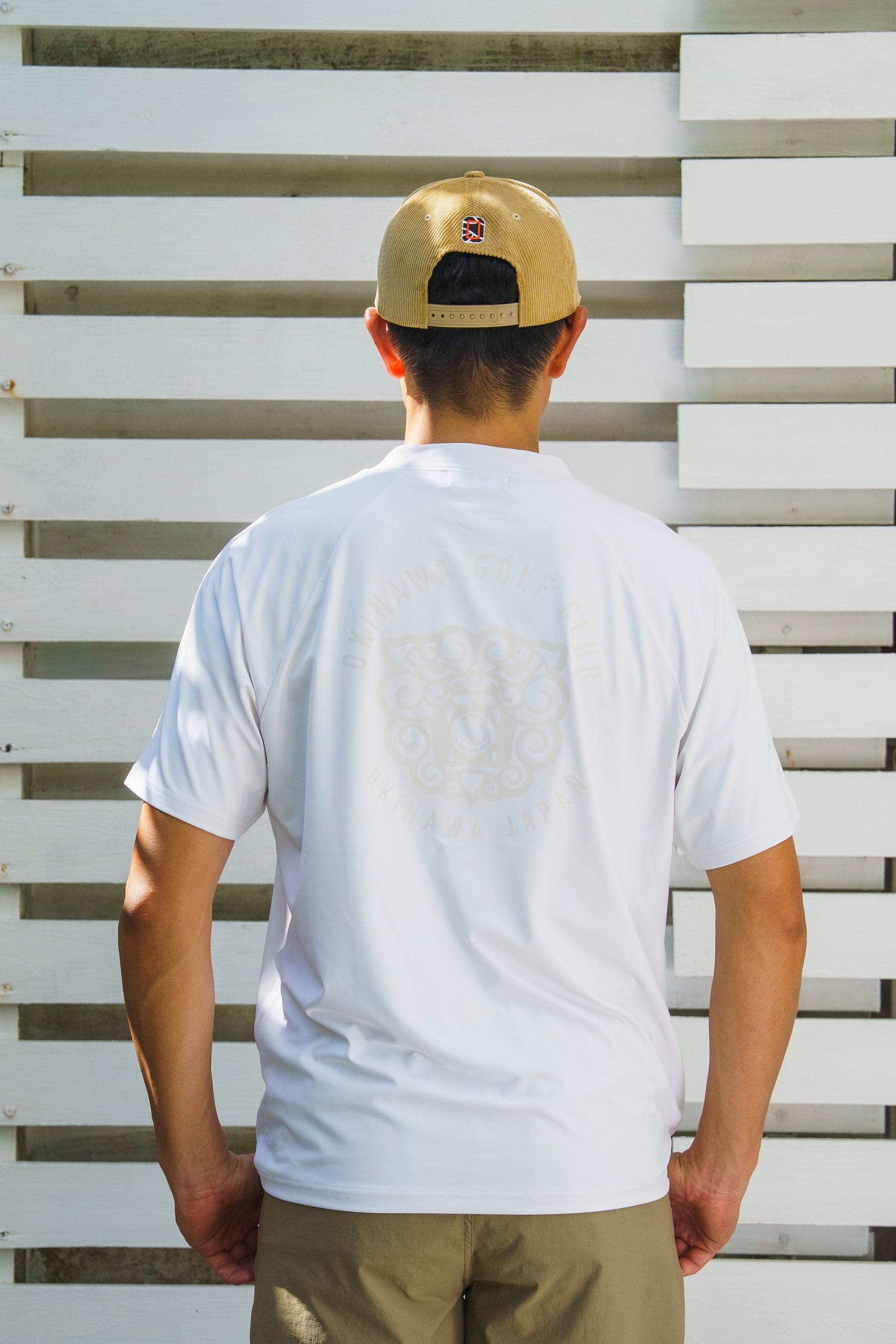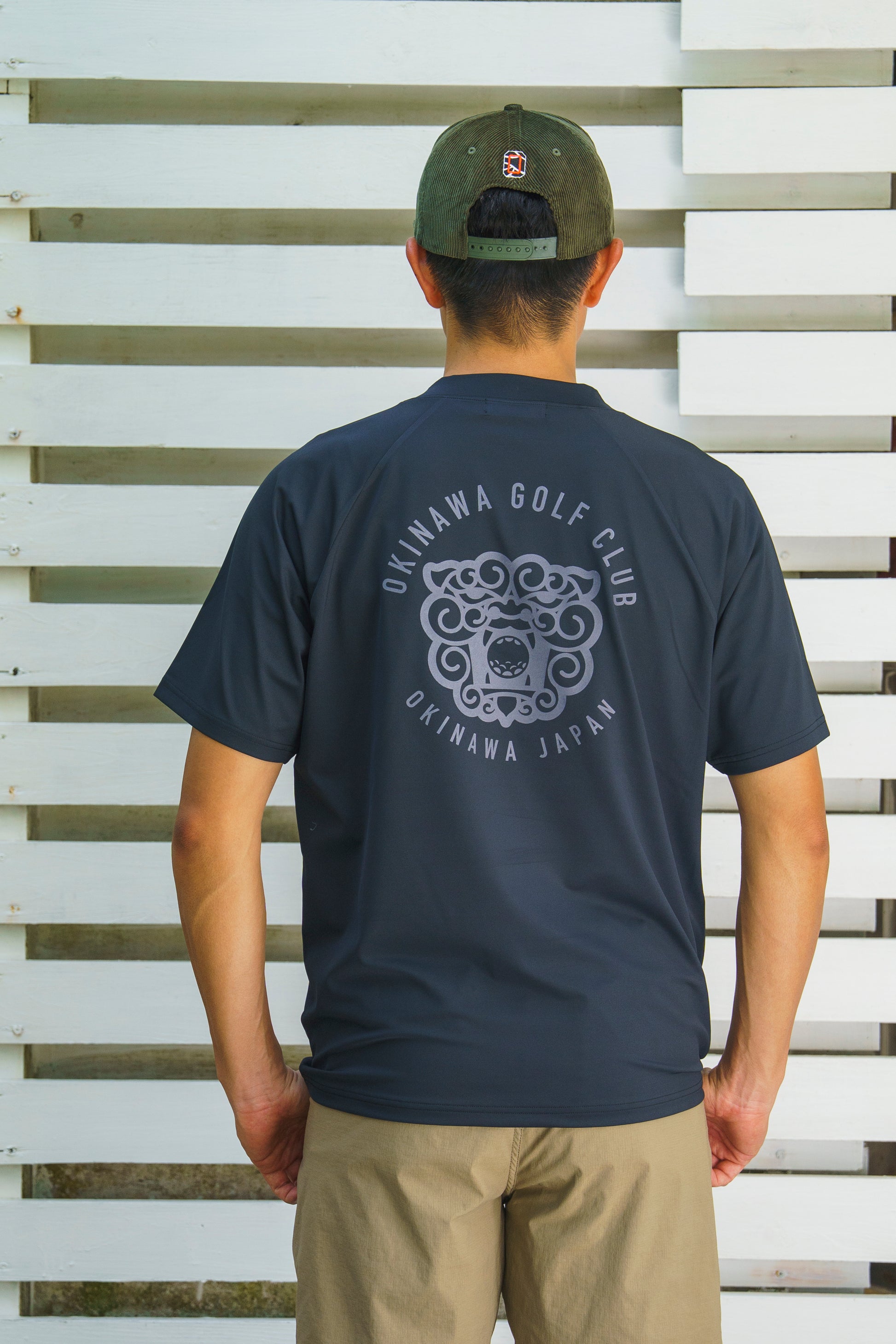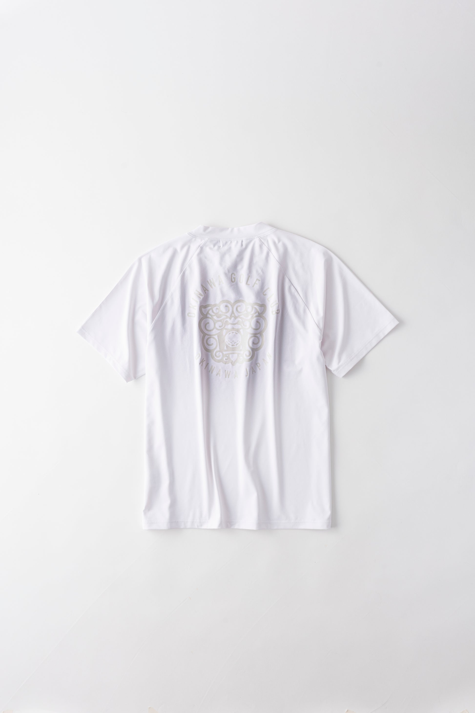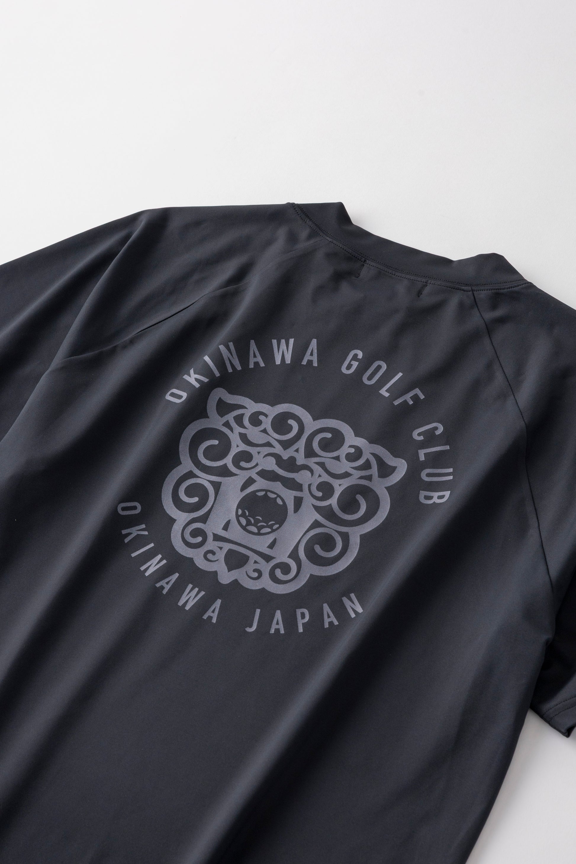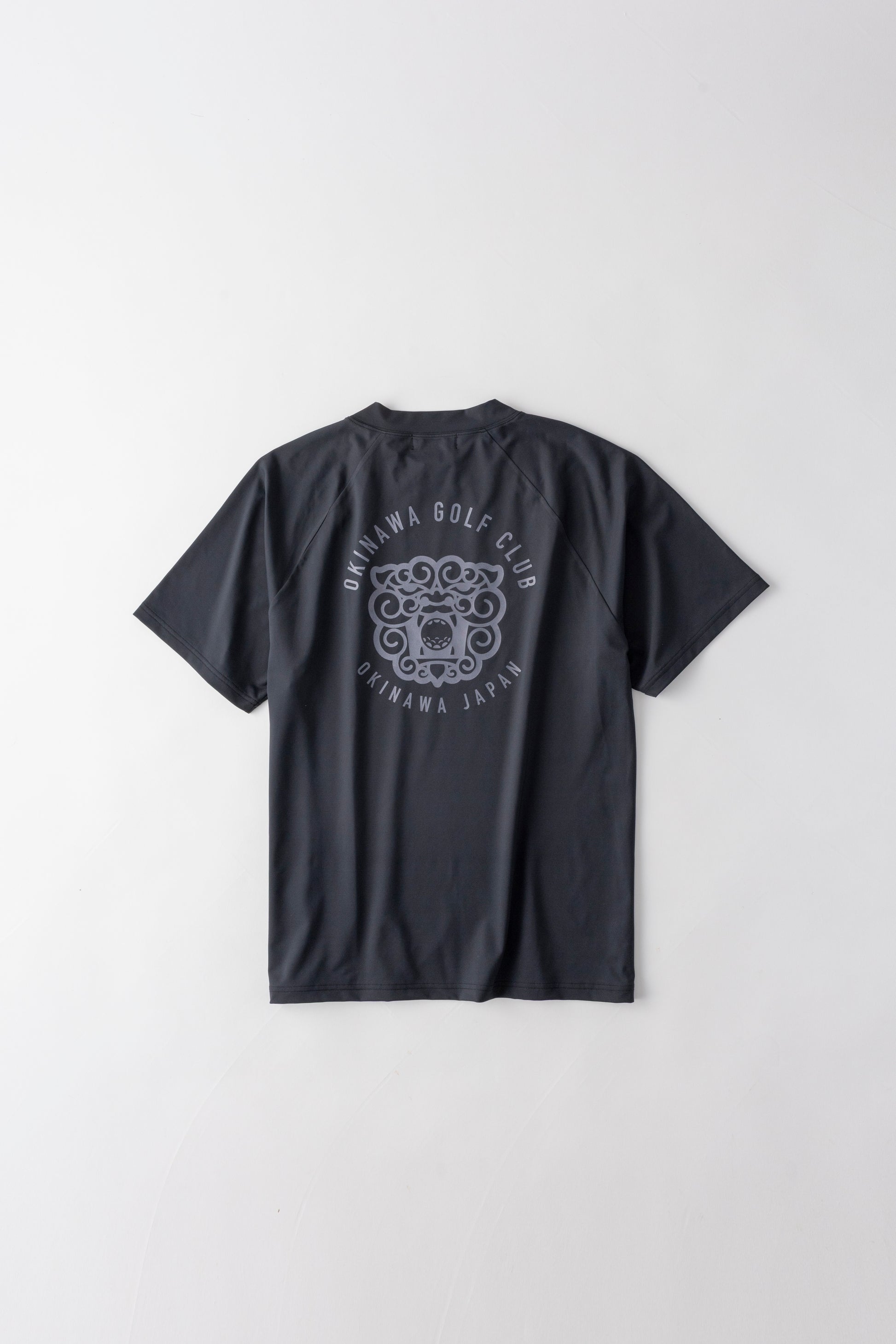 沖縄の守り神「シーサー」をバックに大きくプリントしたモックネックシャツ。